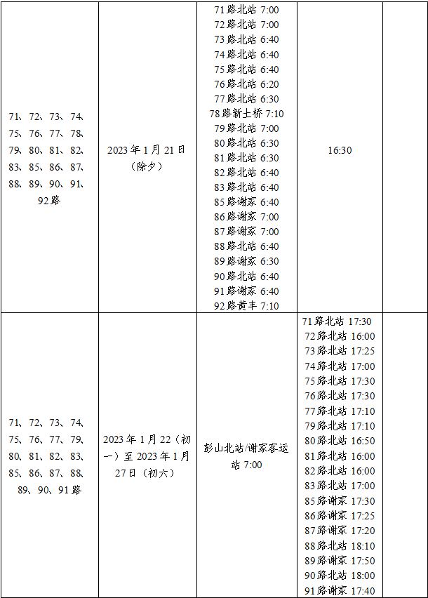 關(guān)于調(diào)整2023年春節(jié)期間城市公交和農(nóng)村客運(yùn)運(yùn)營時(shí)間的通告